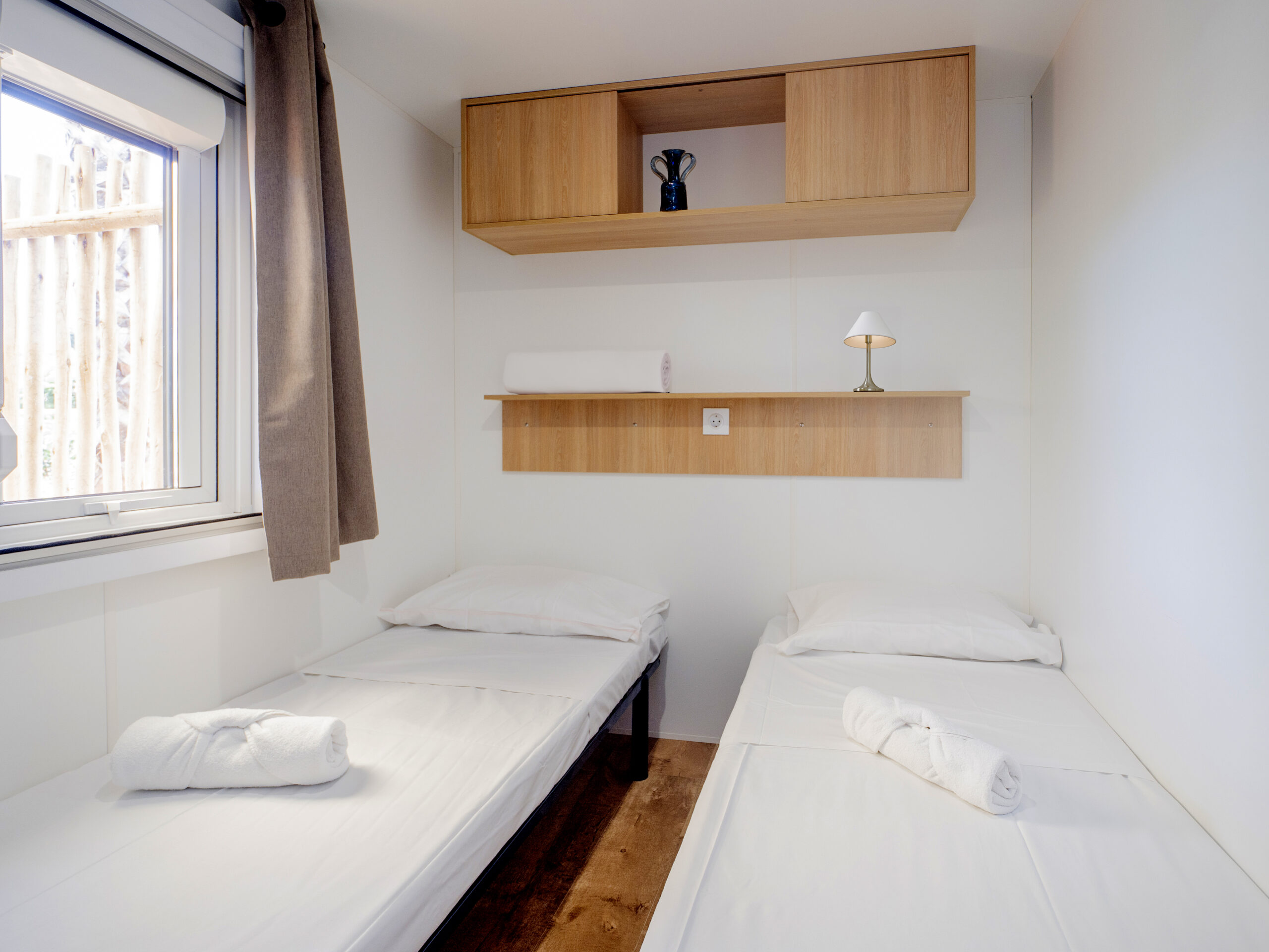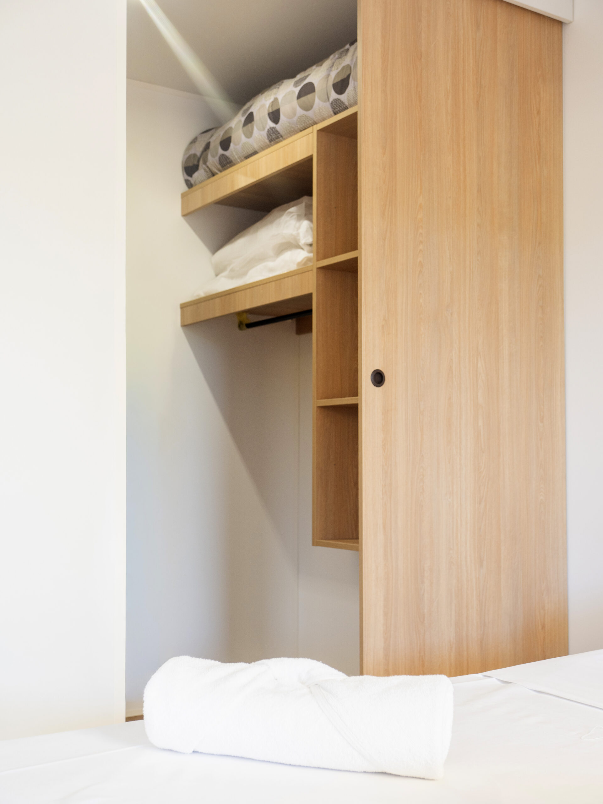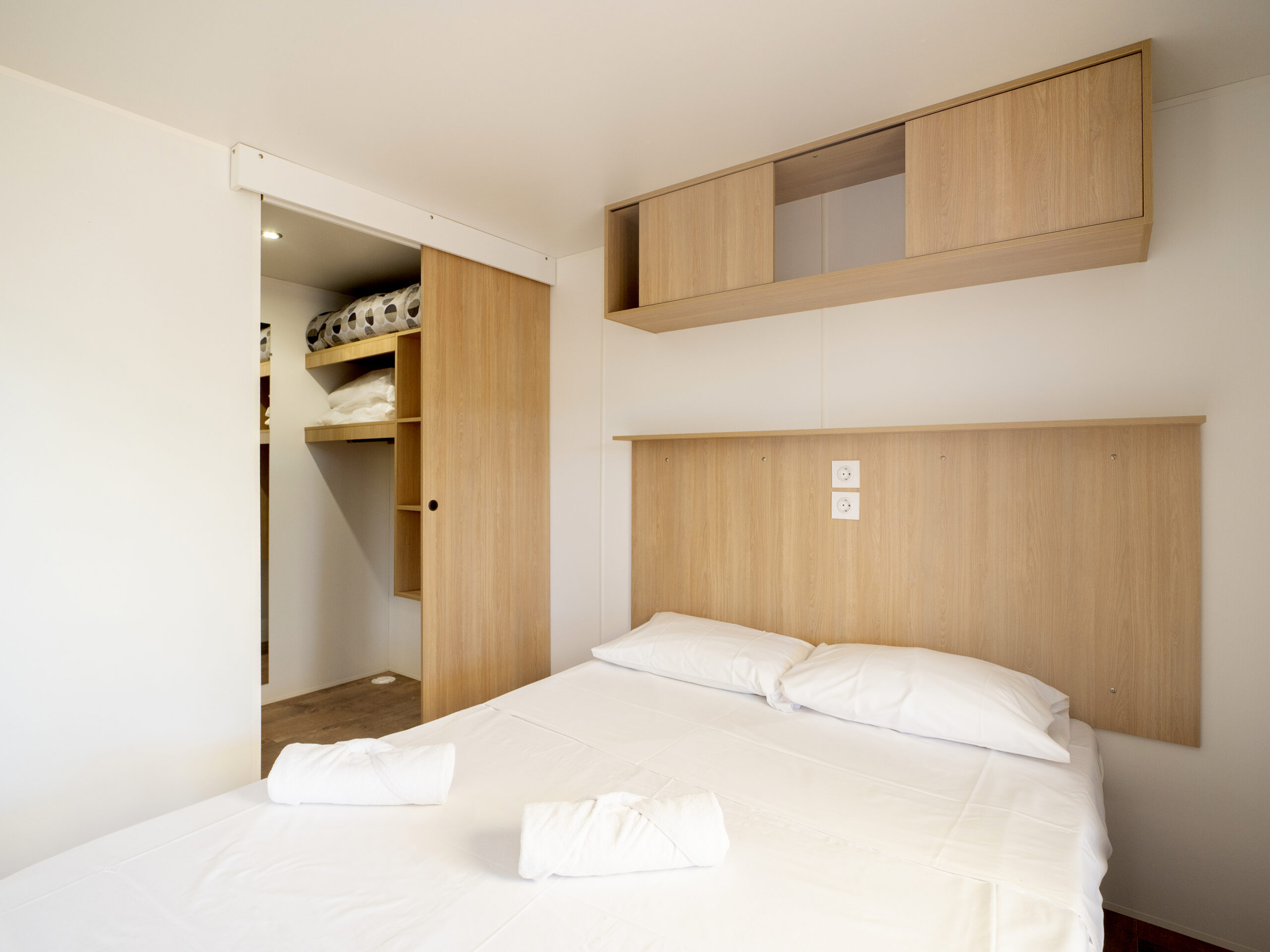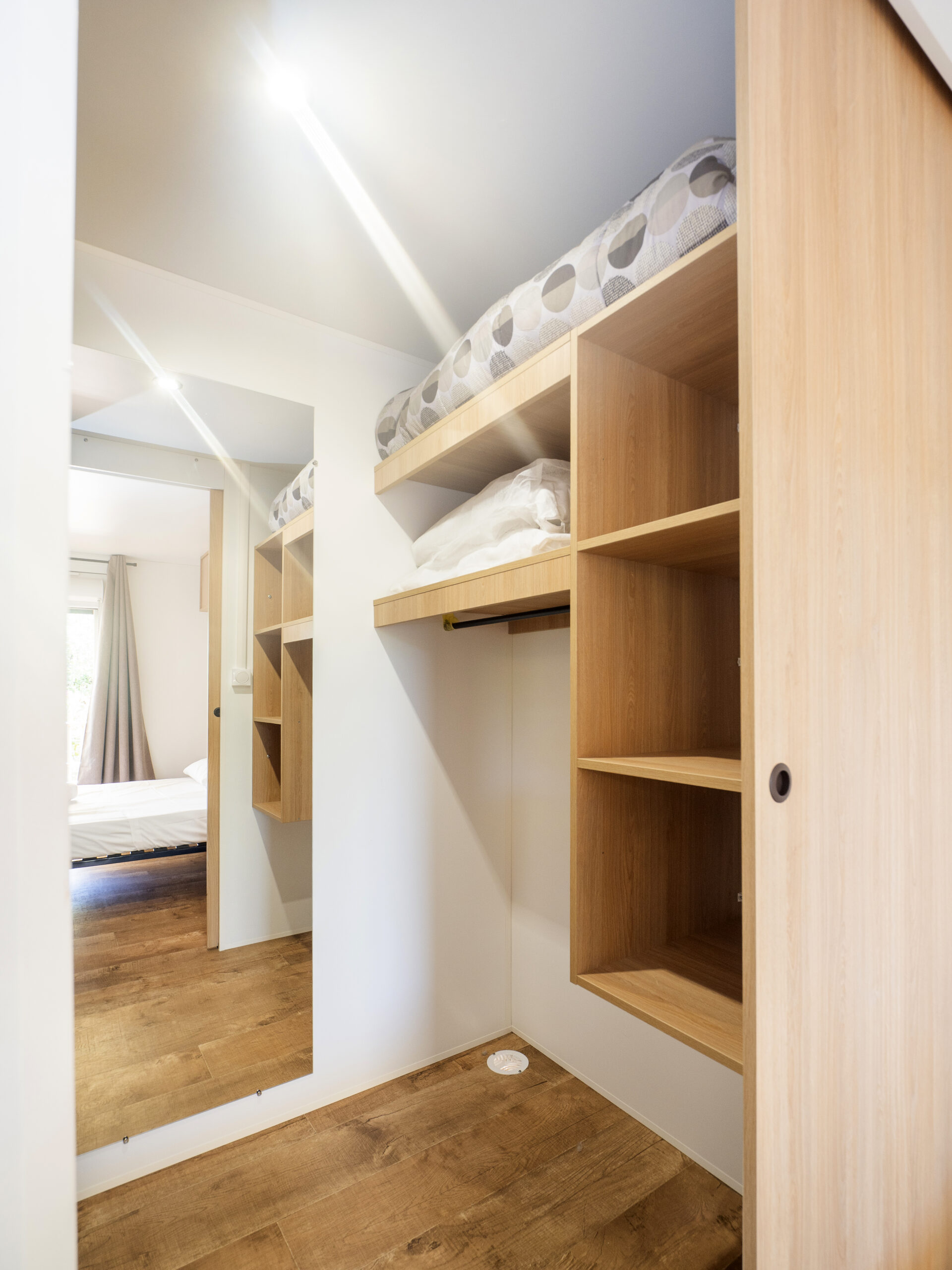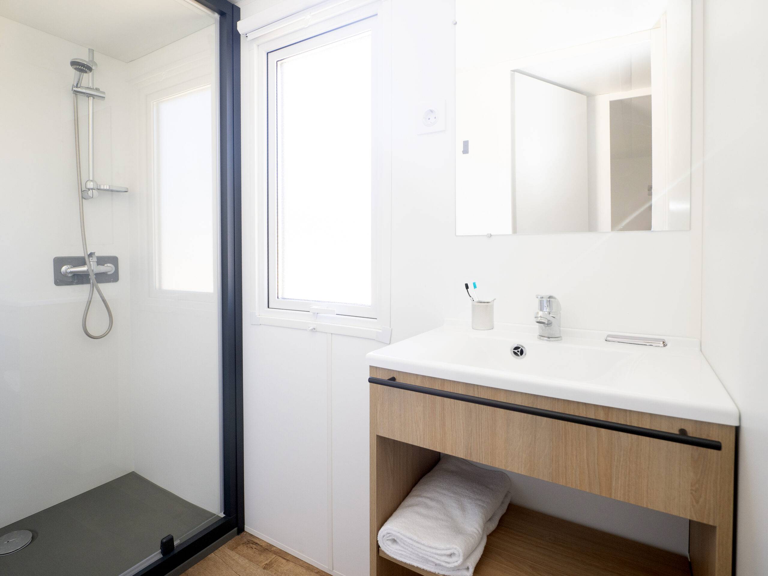 Our Sol chalet villas, made entirely of fir wood, are a top-of-the-range habitat linked to the quality of the construction. The thickness of the wood insulation is a guarantee for both hot and cool periods (which does not exclude air conditioning). With 35 M2 of living space, you enjoy a spacious interior. The large covered terrace is a room of its own to enjoy the mild climate.