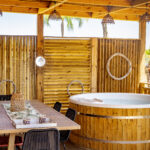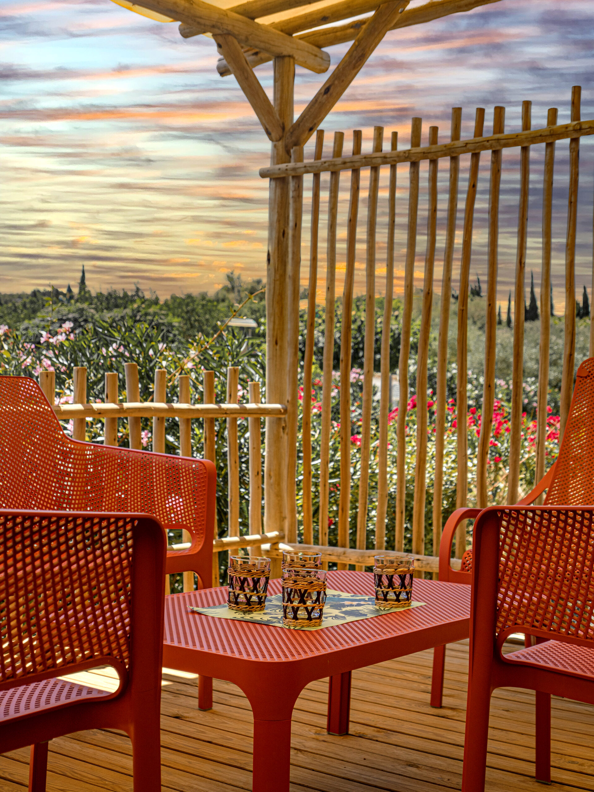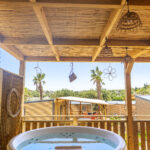 Le domo se trouve dans une partie privative, avec un patio spacieux, entouré par une palissade pour préserver l’intimité, face au champ d’oliviers. Sous la tonnelle, le spa vous apportera le bonheur de la relaxation.